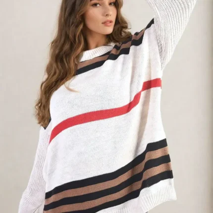 Cozy & Trendy Stripe Oversized Knitted Jumper – Perfect for Any Occasion