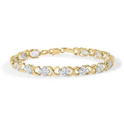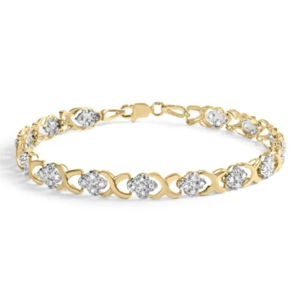 Original price was: USDC5,728.81.USDC3,819.21Current price is: USDC3,819.21.Luxurious 10K Yellow Gold Diamond Floral Cluster & ‘X’ Link Bracelet – 1.00 Cttw, 7″ – Timeless Elegance
