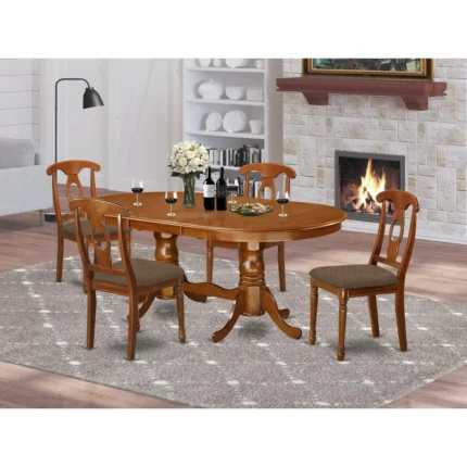 Elegant 5-Piece Saddle Brown Dining Room Set – Oval Table with Double Pedestal & 4 Cushioned Chairs