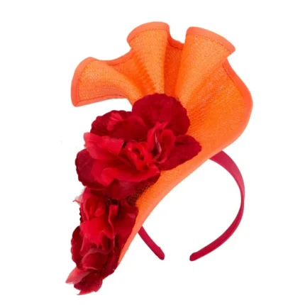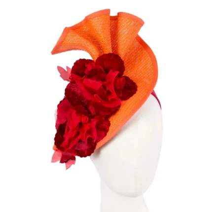 Stunning Orange Red Melbourne Cup Fascinator by Fillies Collection – Ideal for Races & Events