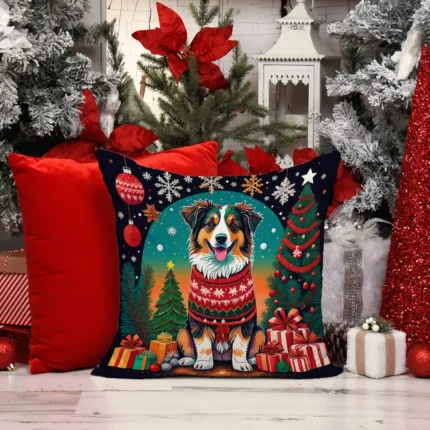 Festive Australian Shepherd Christmas Throw Pillow – Perfect 18×18 Holiday Decor for Indoor & Outdoor Spaces