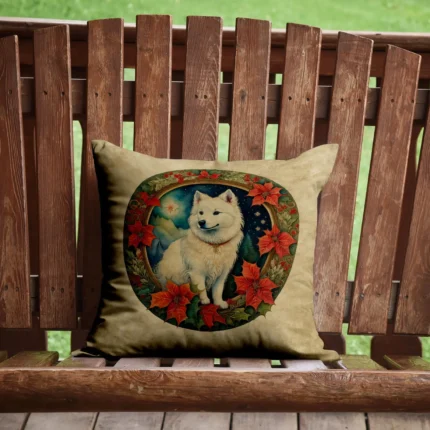 American Eskimo Christmas Flowers Throw Pillow | Festive Dog Art Decor for Indoor & Outdoor Comfort
