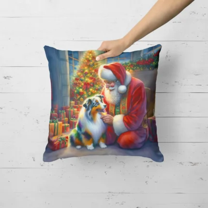 Festive Australian Shepherd and Santa Claus Throw Pillow – 18×18 Inch Decorative Cushion for Indoor & Outdoor Use