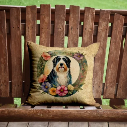 Original price was: USDC59.01.USDC39.34Current price is: USDC39.34.Bearded Collie and Flowers Throw Pillow – Vibrant Outdoor & Indoor Decor, 14×14 Inches, Water-Resistant, Made in USA