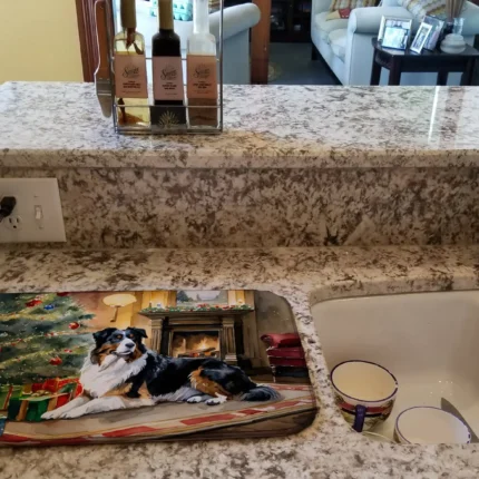Australian Shepherd Cozy Christmas Dish Drying Mat – Festive, Absorbent & Non-Slip