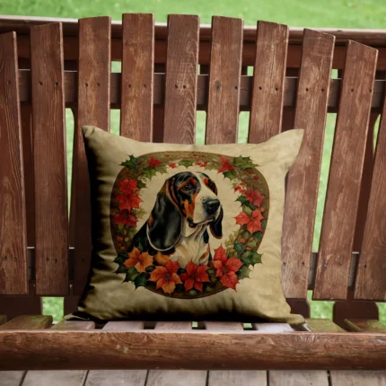 Basset Hound Christmas Flowers Throw Pillow – Festive & Decorative Outdoor Cushion