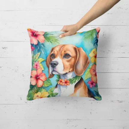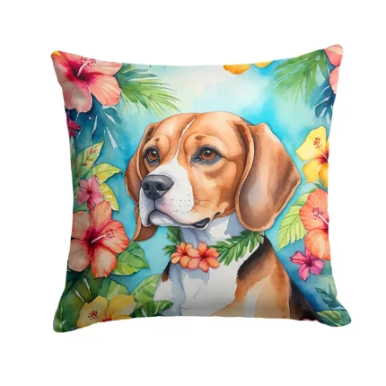 Beagle Luau Throw Pillow – Vibrant 18×18 Outdoor & Indoor Decorative Cushion | Unique Dog Lover’s Pillow