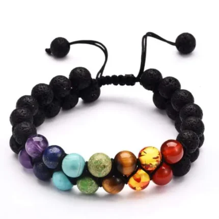 7 Chakra and Lava Stone Double Braided Bracelet Balance & Serenity