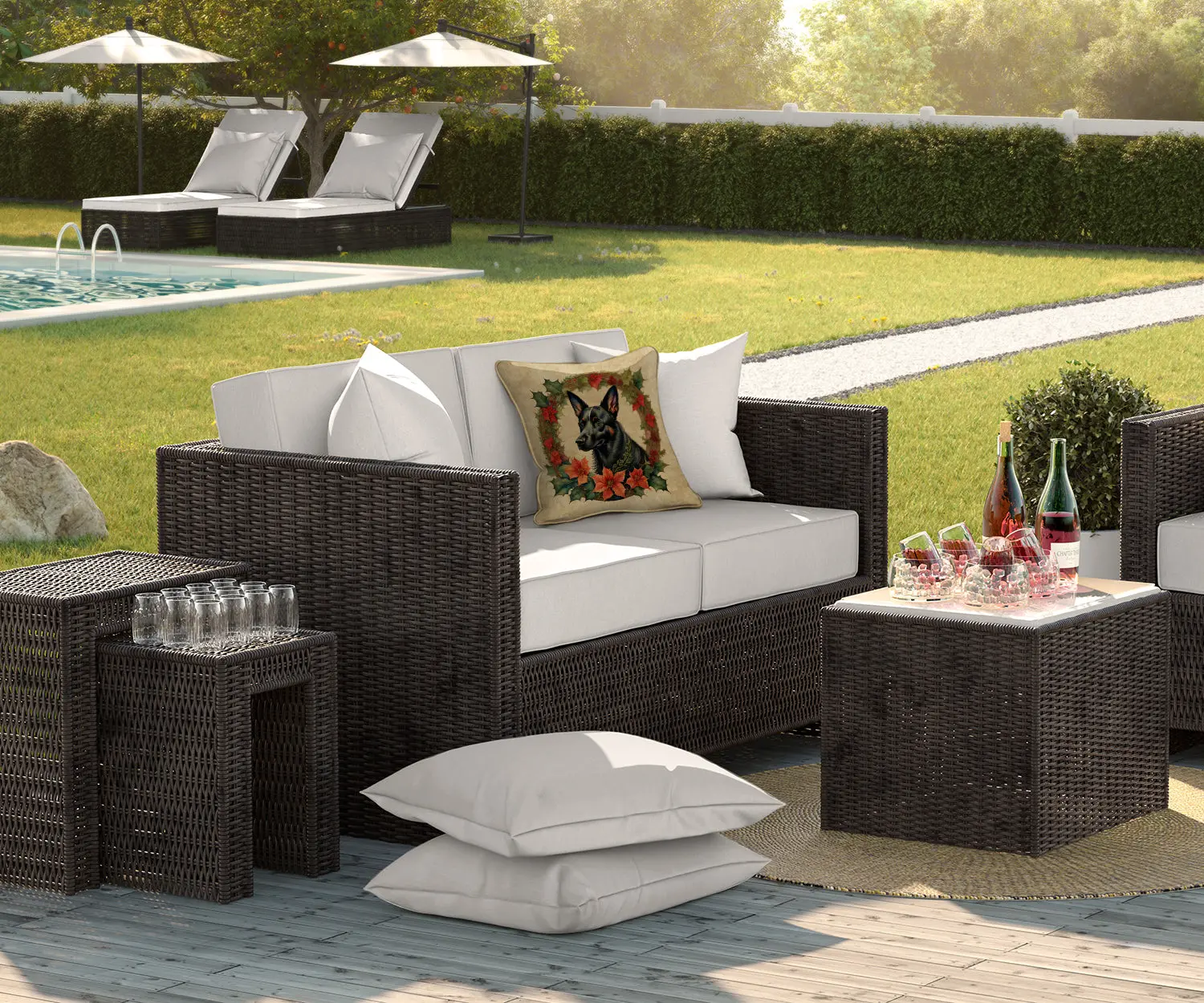 Australian Kelpie Christmas Flowers Throw Pillow – 18×18 Fabric Decorative Pillow for Indoor & Outdoor Use