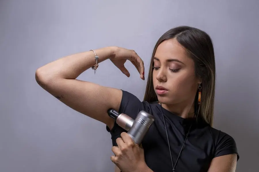 Tags: compact massage tool, massage gun, muscle recovery, portable massage device, powerful massager, stress relief, travel-friendly massage gun