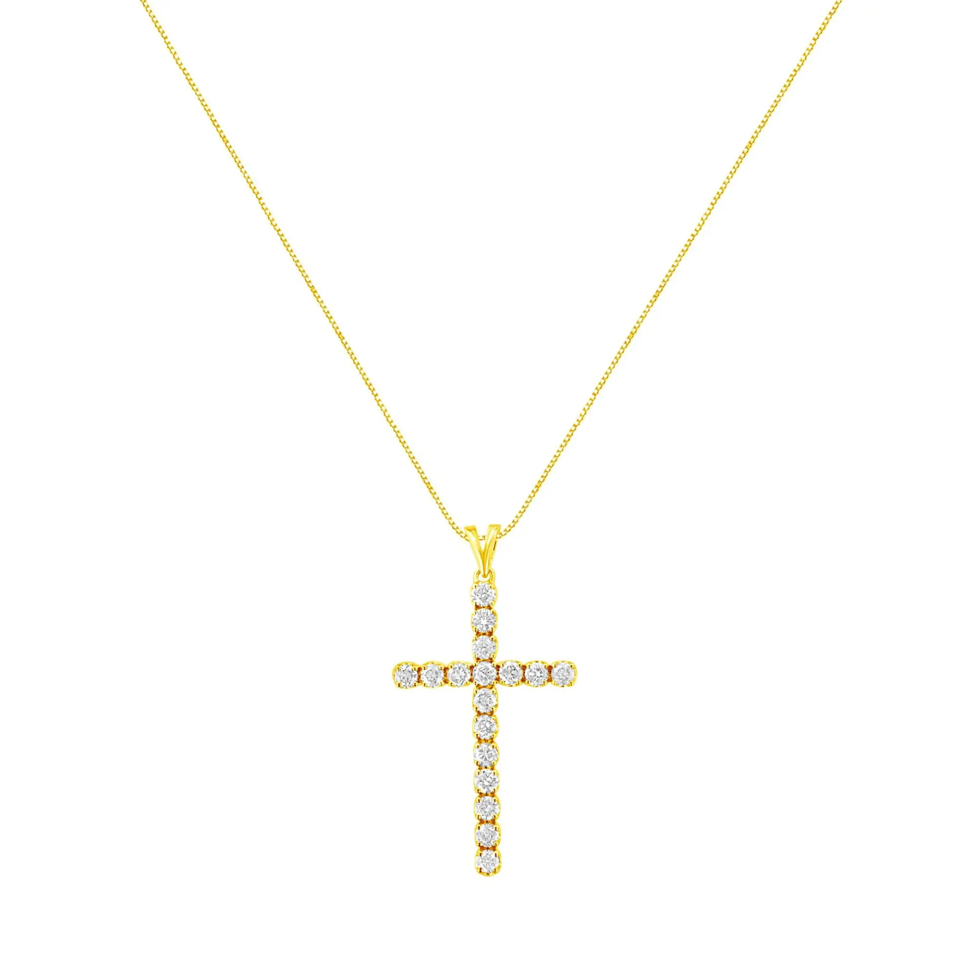 Elegant 10k Yellow Gold Plated .925 Sterling Silver Diamond Cross Pendant Necklace – 2.0 cttw