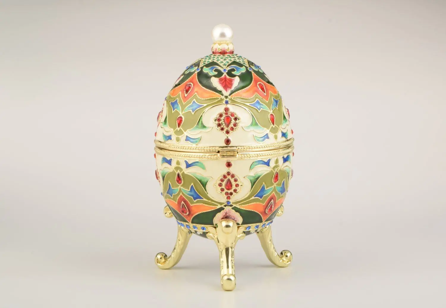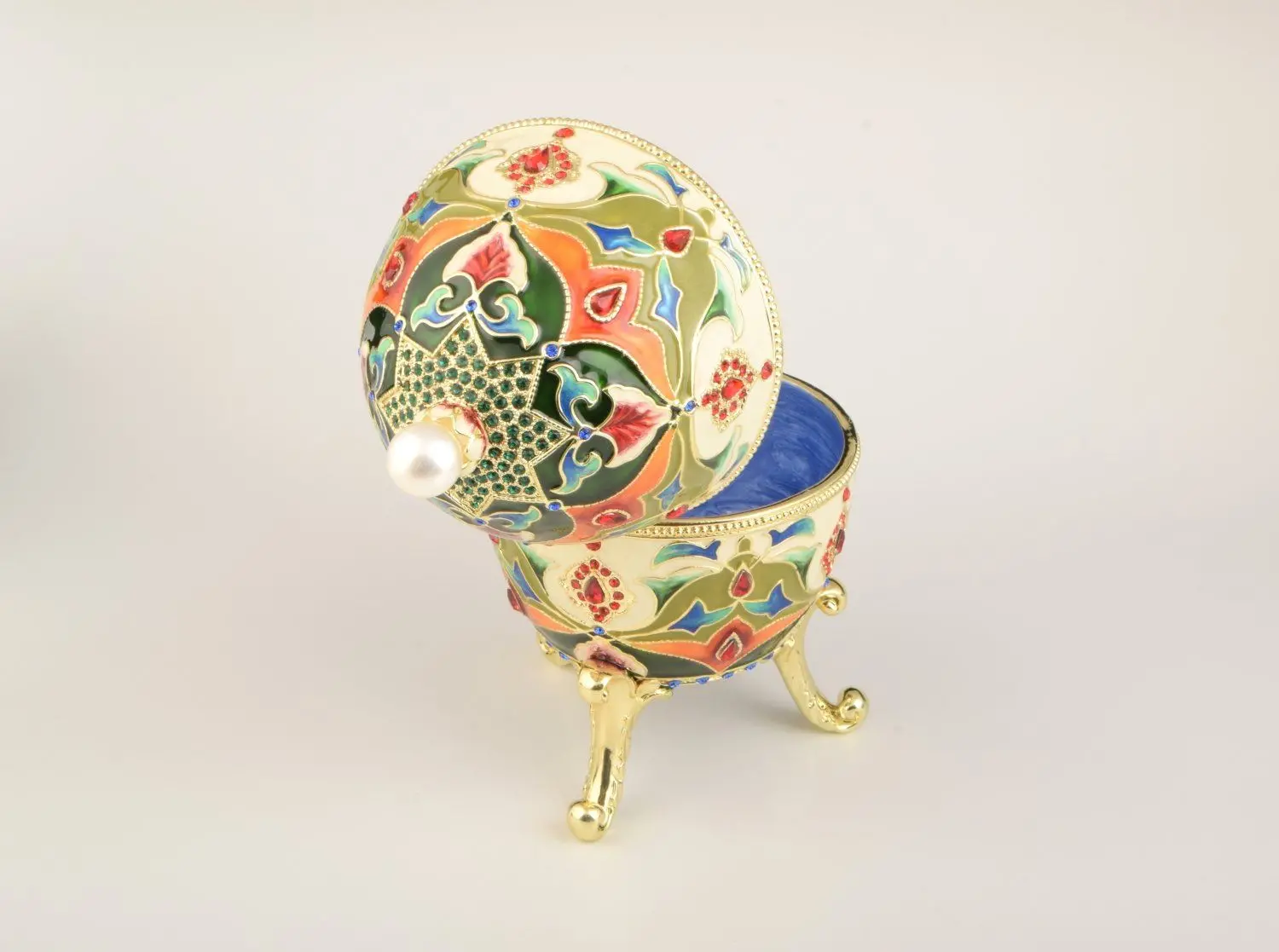 Discover the exquisite craftsmanship of the Handcrafted Colorful Russian Egg Trinket Box. This enchanting piece is meticulously designed for art lovers and collectors who appreciate intricate details and luxurious finishes.