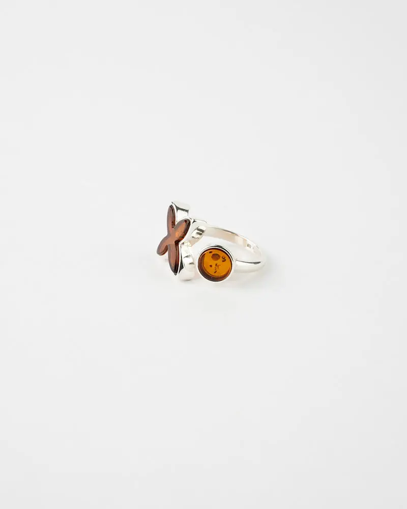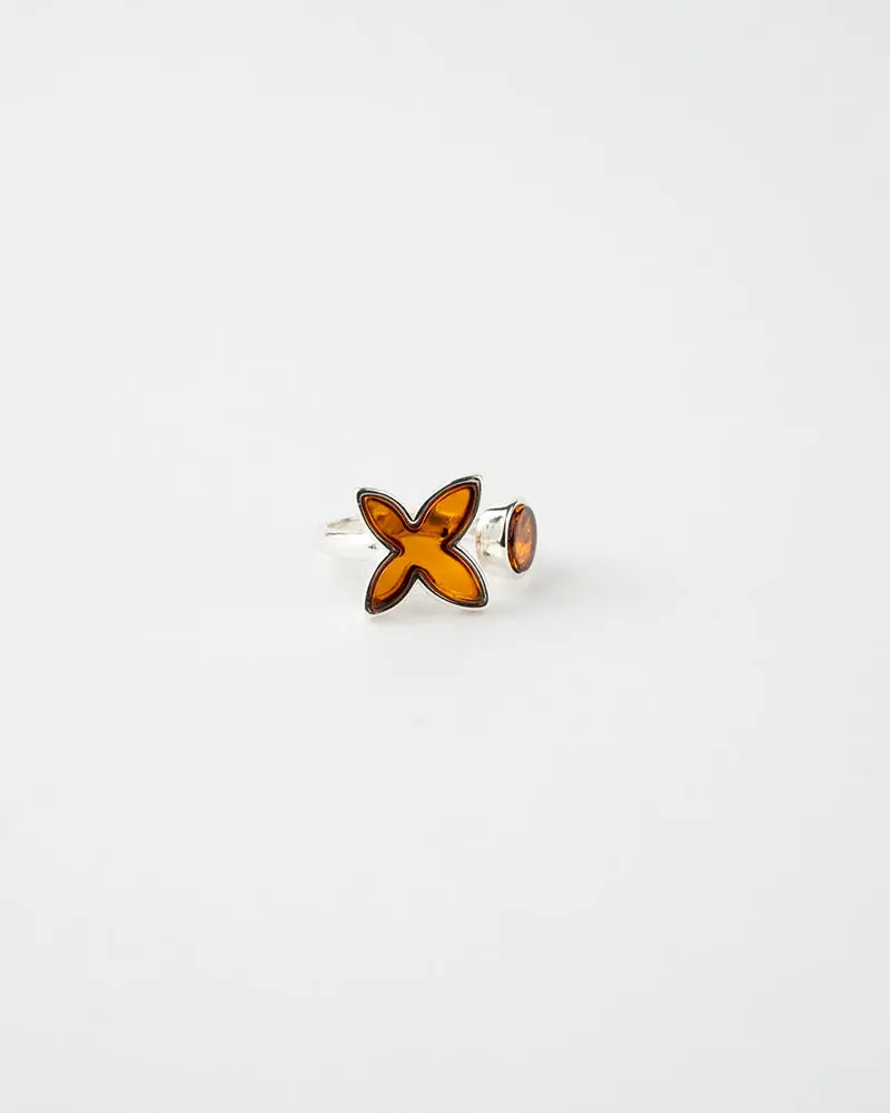 Elegant & Stylish Simple Butterfly Circle Adjustable Ring | Baltic Amber & 925 Sterling Silver