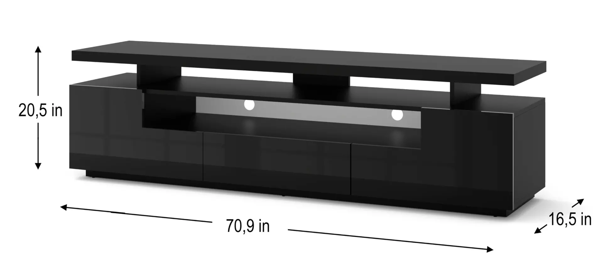 EVA 180 TV Stand – 70.87″ in Black Matt/Black Gloss – Modern & Elegant Living Room Furniture