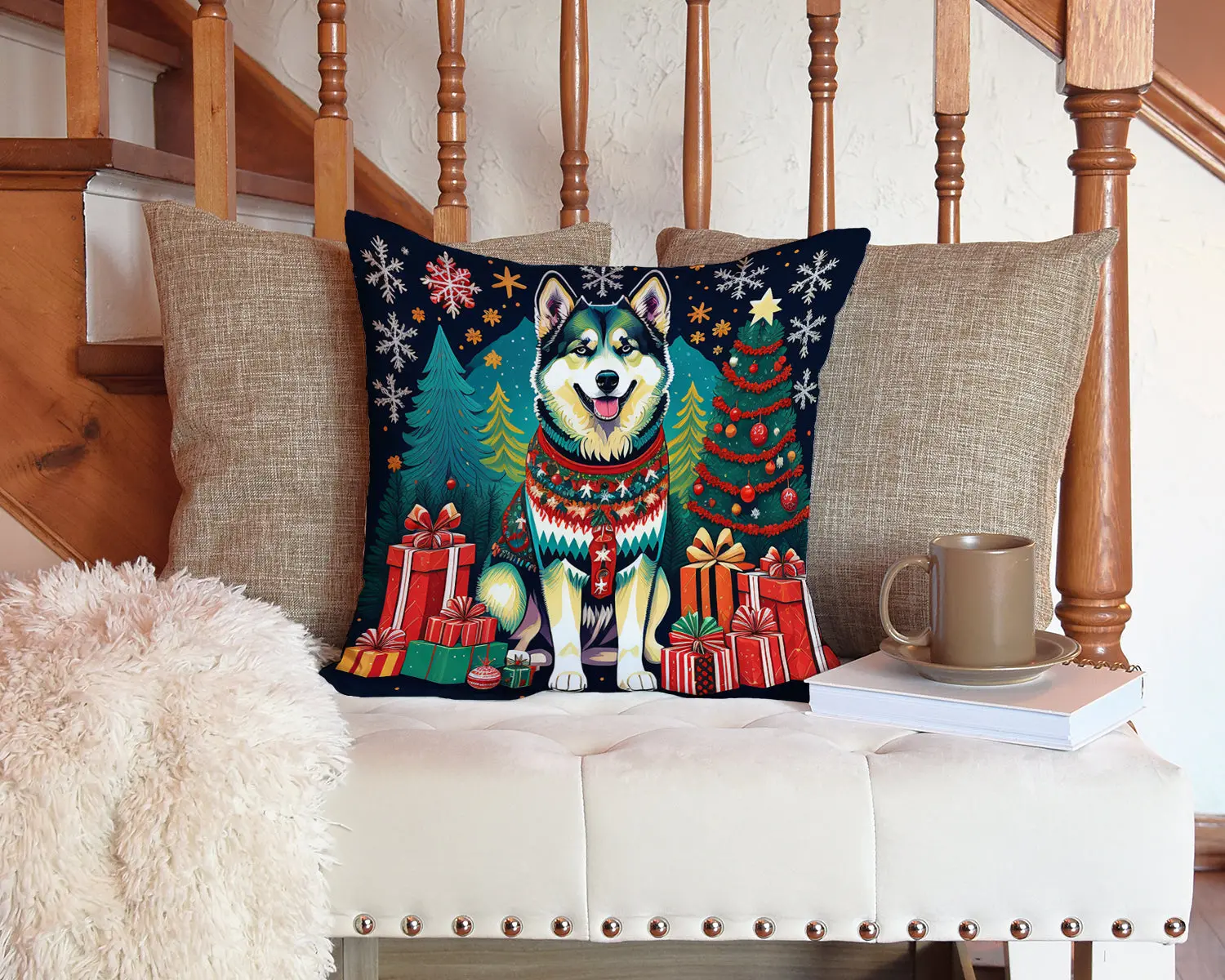 Festive Alaskan Malamute Christmas Throw Pillow – Durable & Weather-Resistant, Perfect for Home & Patio