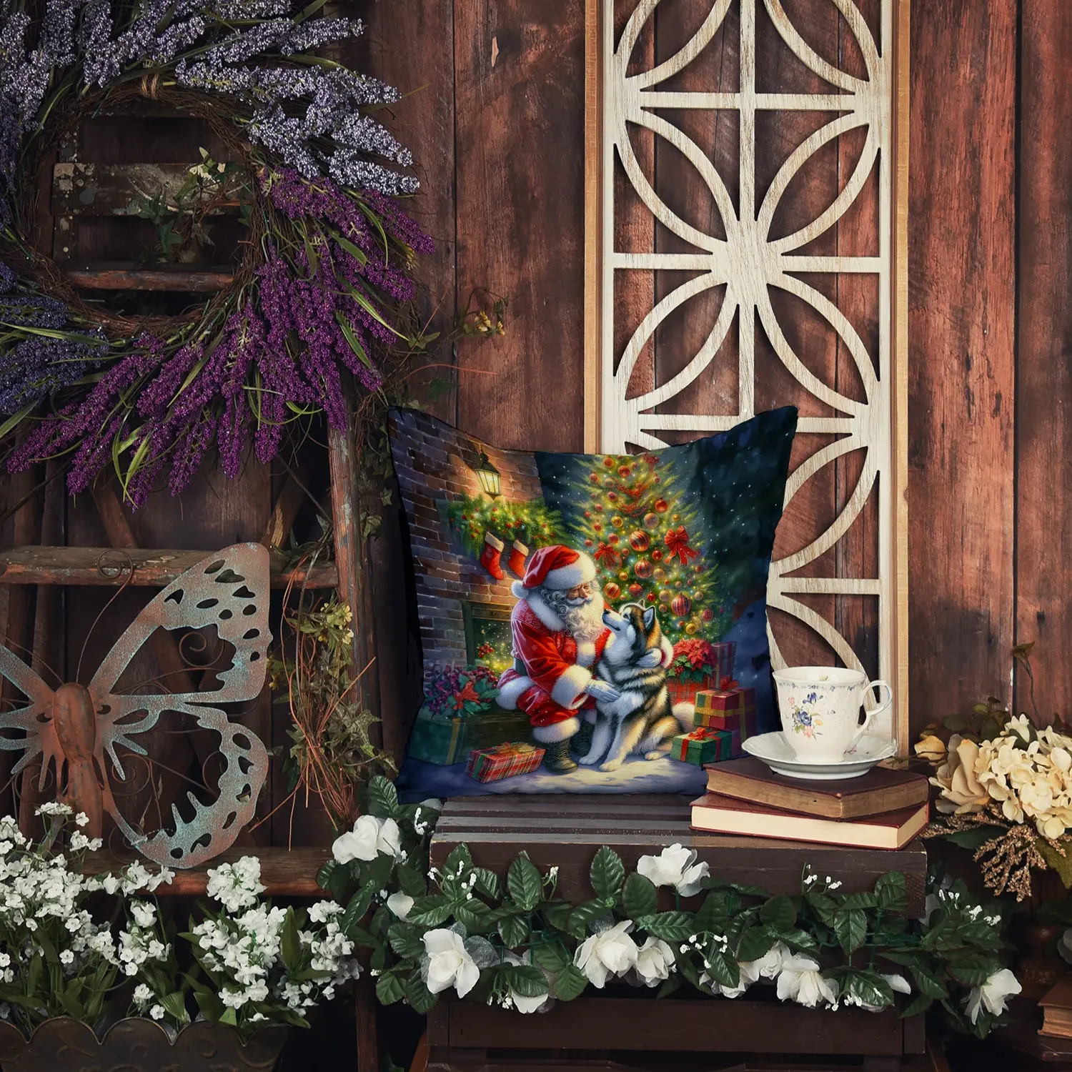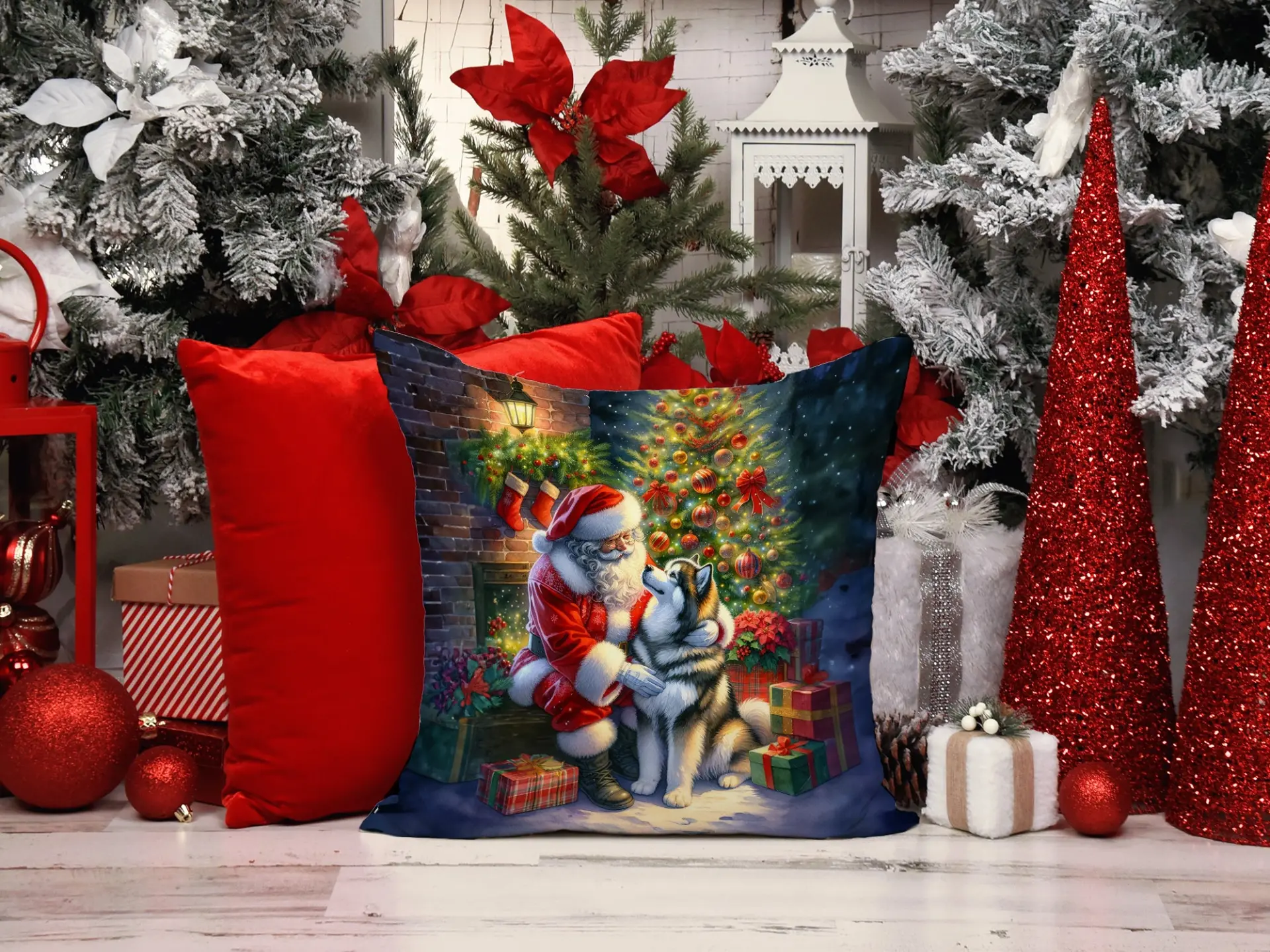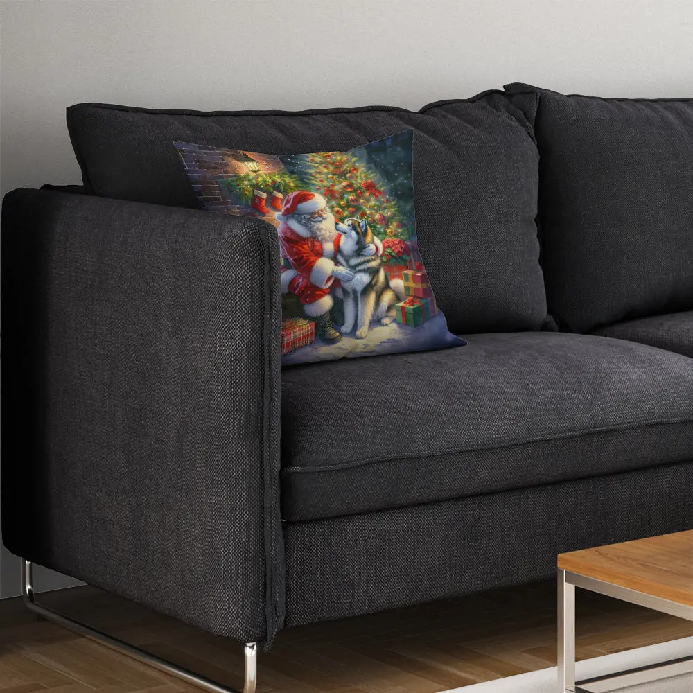 Celebrate Christmas in Style with the Alaskan Malamute & Santa Claus Throw Pillow!