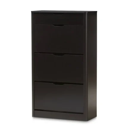 Baxton Studio Adelina Mid-Century Modern Oak & Grey Shoe Cabinet – 1-Door, 10 Shelves, Stylish Storage Solution