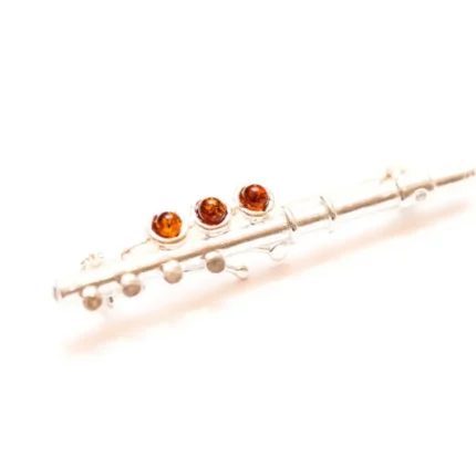 Amber & Silver Flute Brooch - Exquisitely Crafted Music Accessory