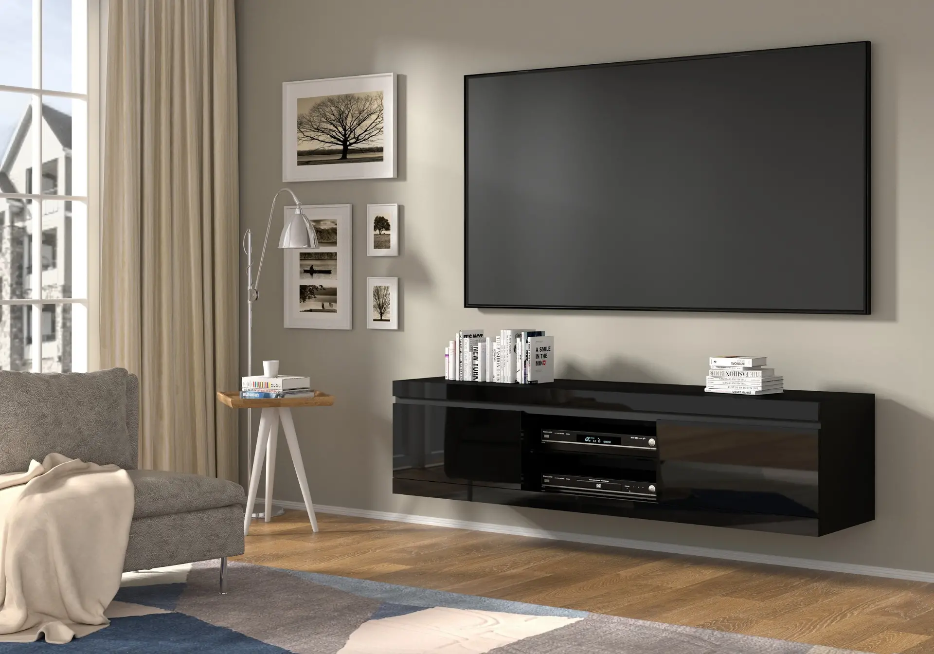Tags: black matte finish, Contemporary TV Stand, European quality furniture, high gloss finish, Living Room Furniture, modern TV stand, TV Storage, versatile TV stand, wall-mount TV stand