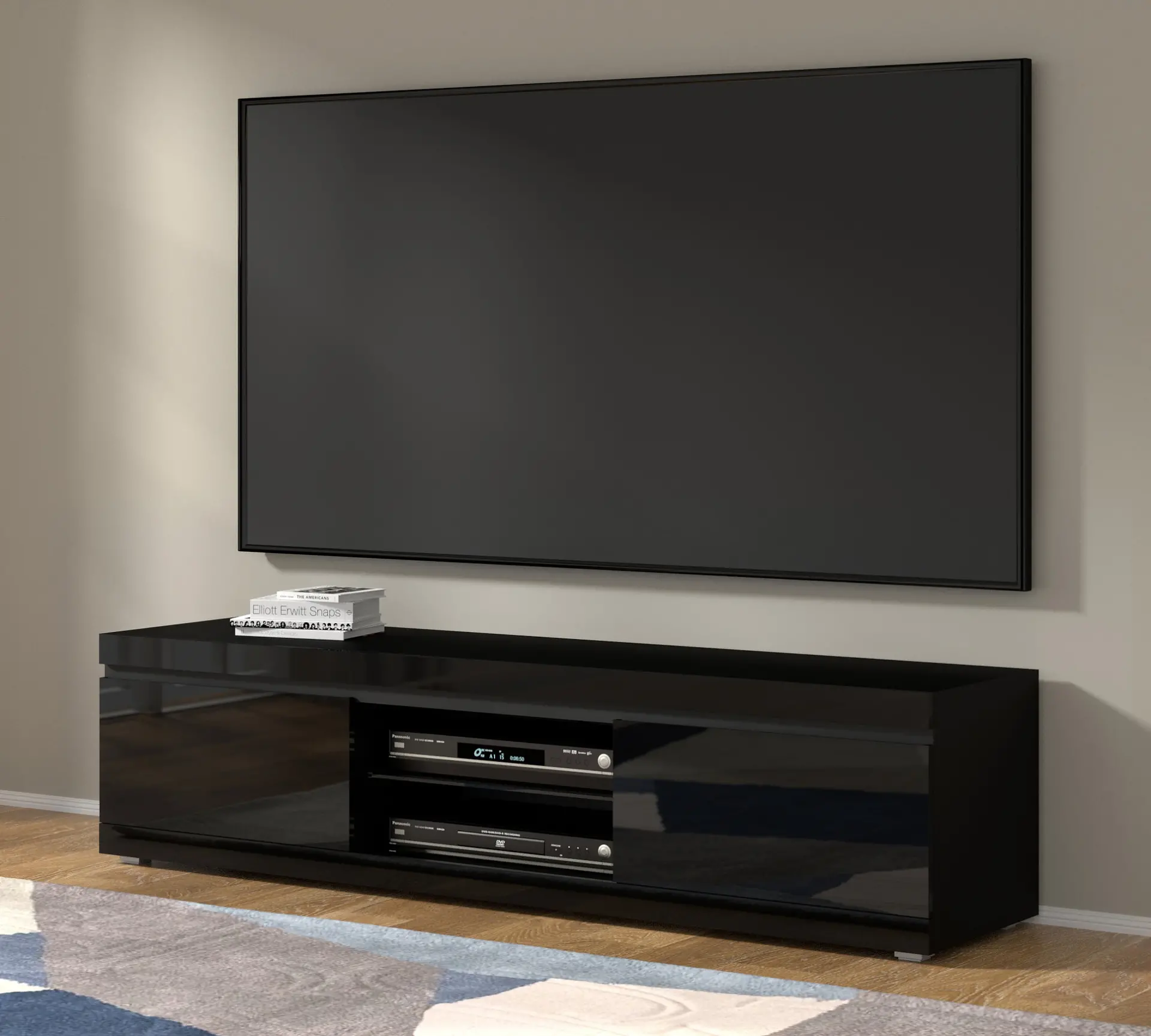 NET 180 Modern TV Stand | 70.87″ Black Matte & Gloss Finish | Wall-Mount or Stand
