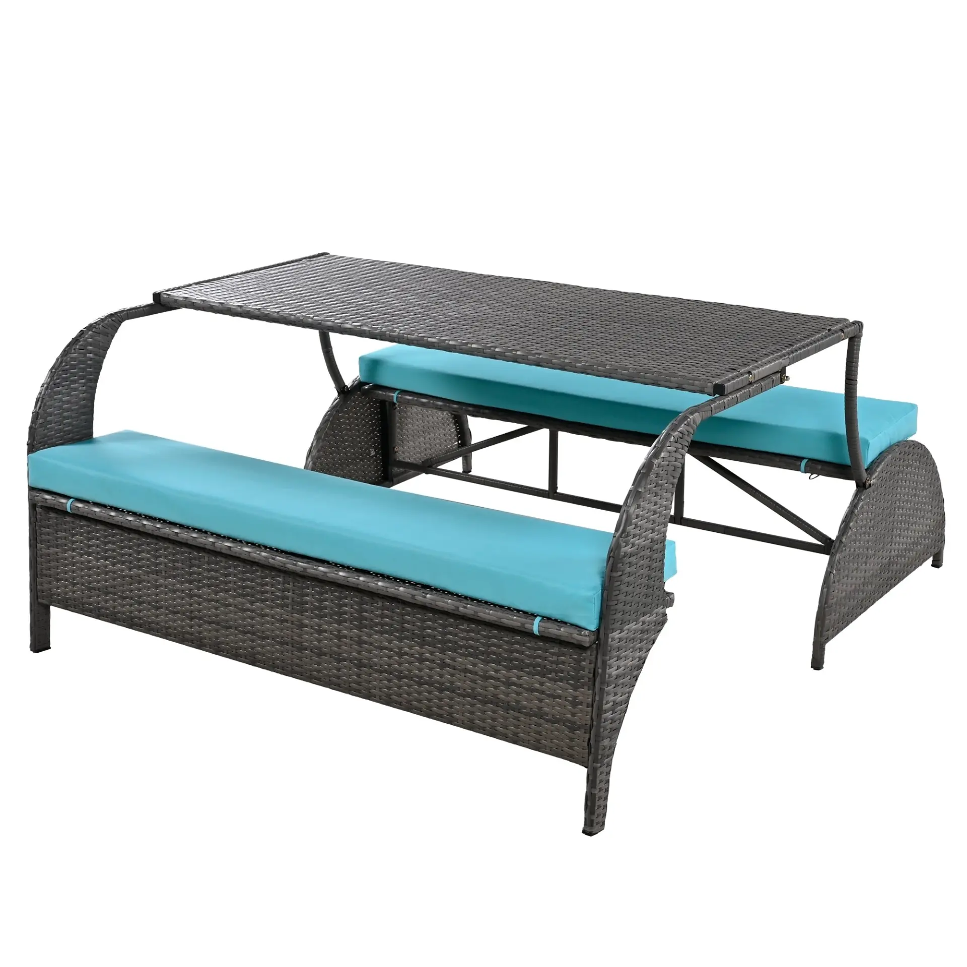 - Multi-functional Design: Easily converts from a two-person sofa to a four-person seating arrangement with an added table. Perfect for various outdoor activities and gatherings.