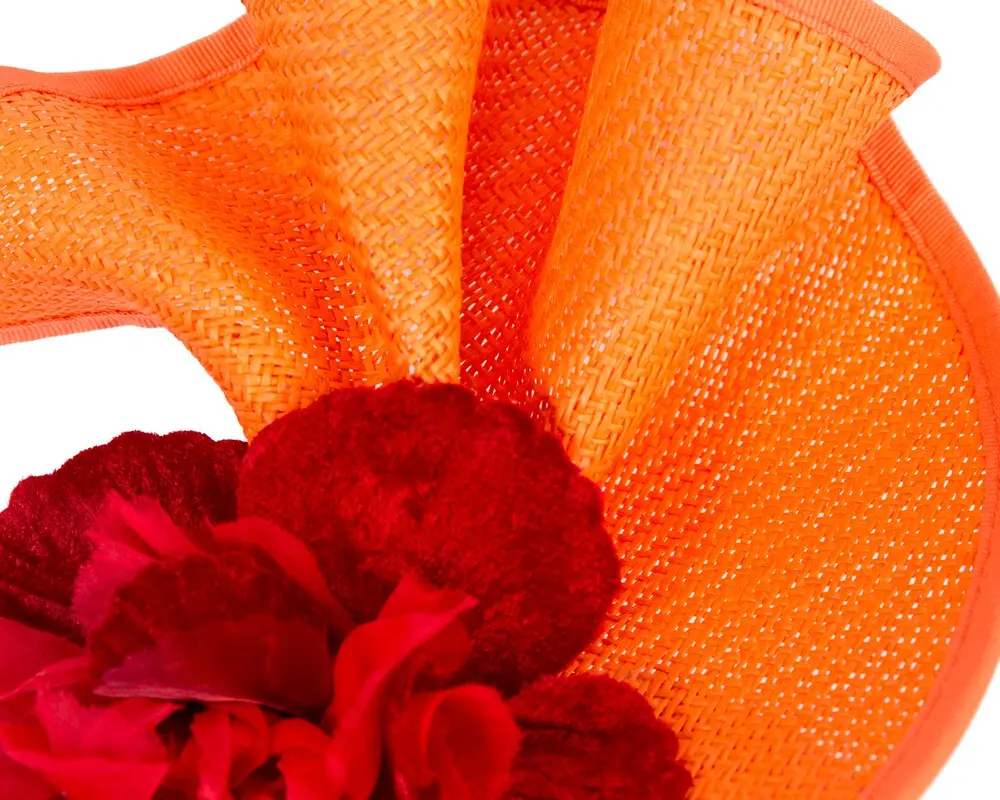 - Elegant Design: Beautiful orange fascinator with a dynamic red flower bunch.