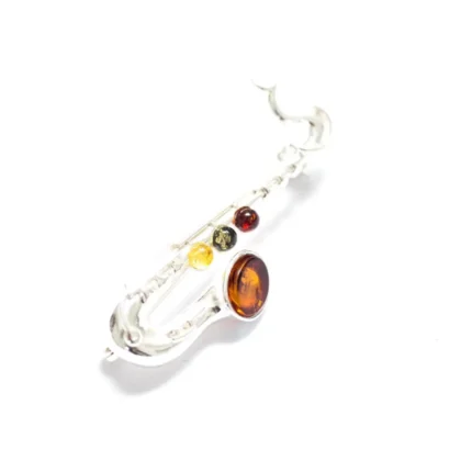 Multi Amber Saxophone Brooch | Sterling Silver & Baltic Amber - Elegant & Unique Jewelry for Music Lovers