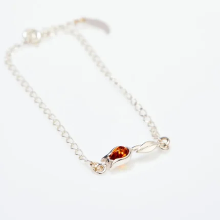 Elegant Tulip Amber Bracelet - Sterling Silver & Baltic Amber - Perfect Gift Jewelry