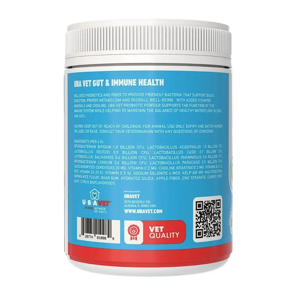 Transform your pet’s health with UBAVET Floradox Probiotic Powder, a superior supplement designed to support immune function and maintain a balanced gut microbiome in dogs and cats. Each 4-gram serving is enriched with a powerful blend of probiotics, including Lactobacillus and Bifidobacterium strains, delivering an impressive one billion CFUs per gram. This ensures your pet has the friendly bacteria essential for optimal digestion and metabolism.